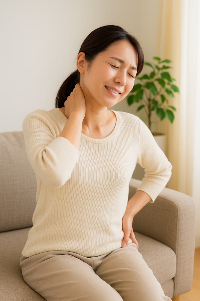 食べすぎ・飲みすぎ・糖質過多で、肝臓や腸が疲れていると、それが反射的に筋肉の緊張や痛みとして現れます。