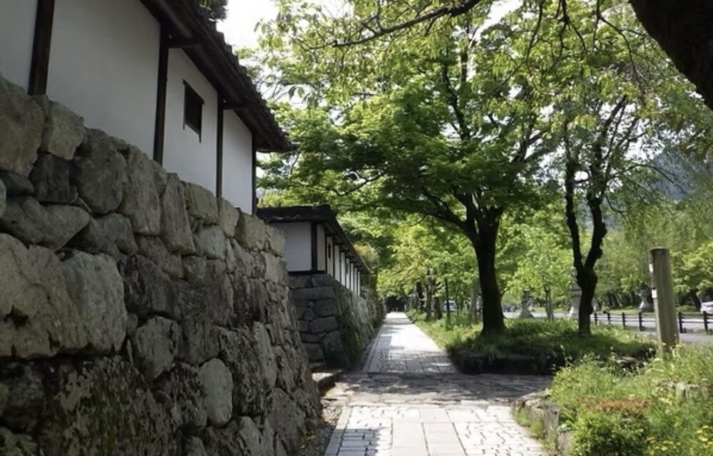 比叡山延暦寺の門前町として栄え、寺院や里坊(さとぼう)を支える美しい石垣が街並みに溶け込んでいます。