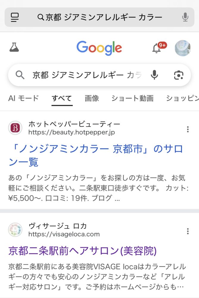 「京都 ジアミンアレルギー カラー」