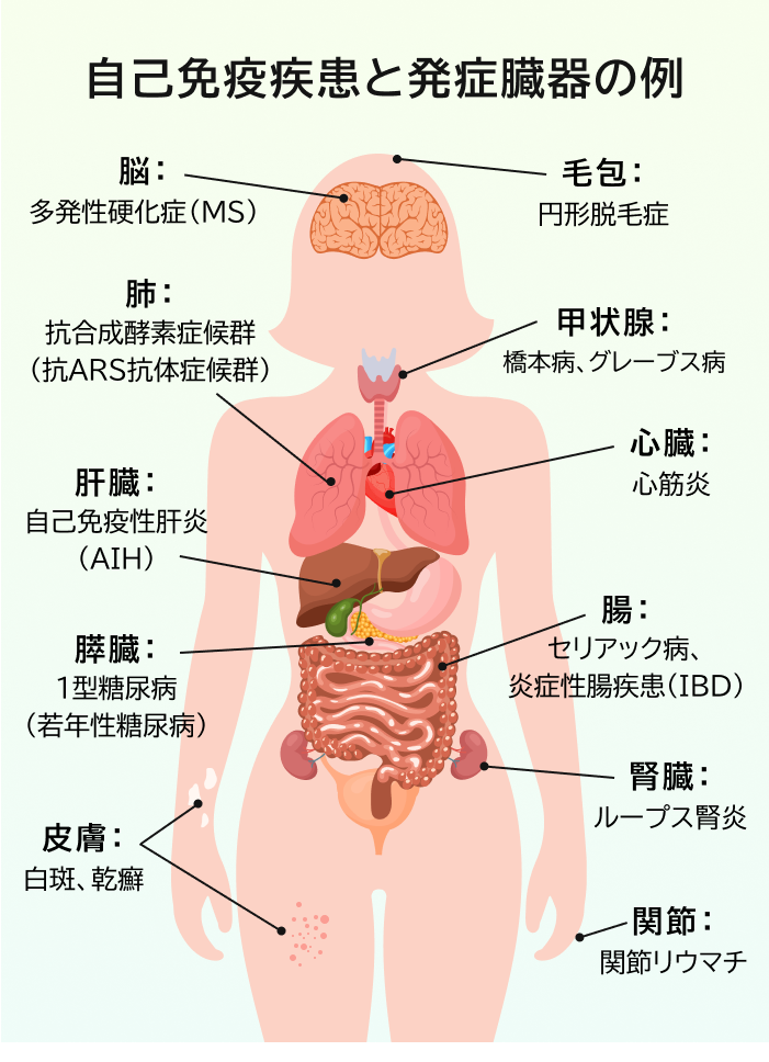 本来守るべき自分の細胞を、免疫が“敵”と勘違いして攻撃する状態。