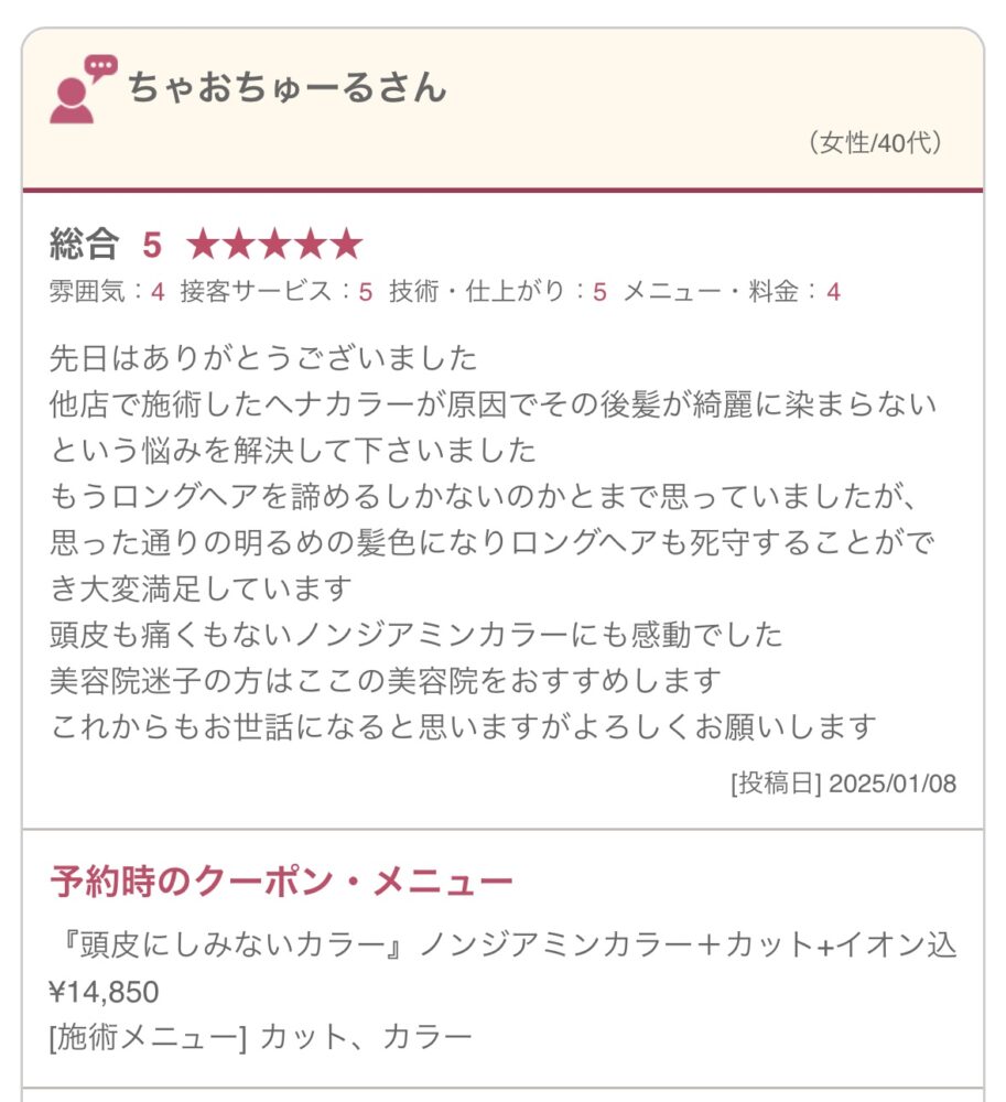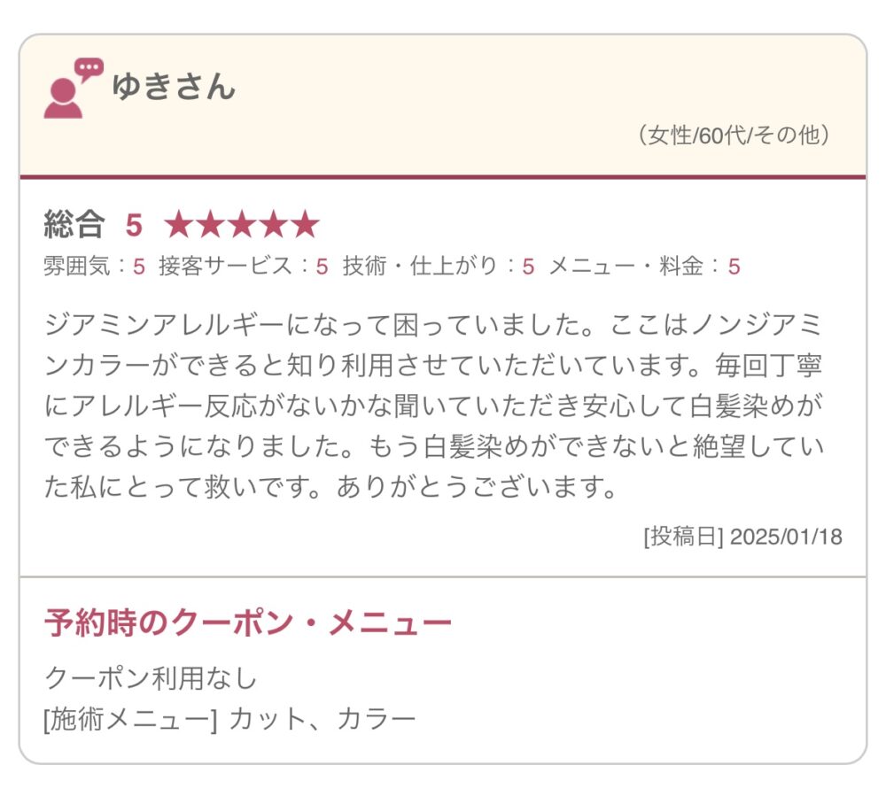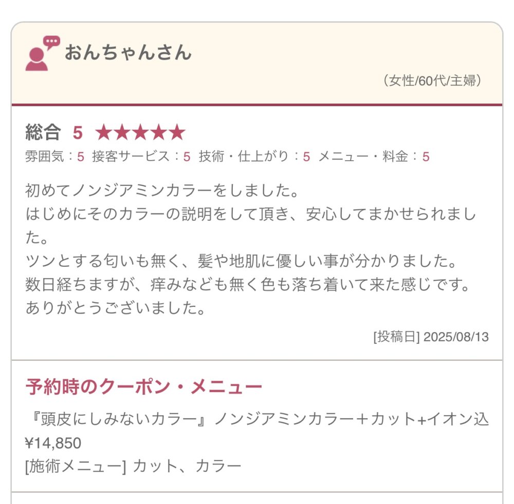 7・ノンジアミンカラー口コミ