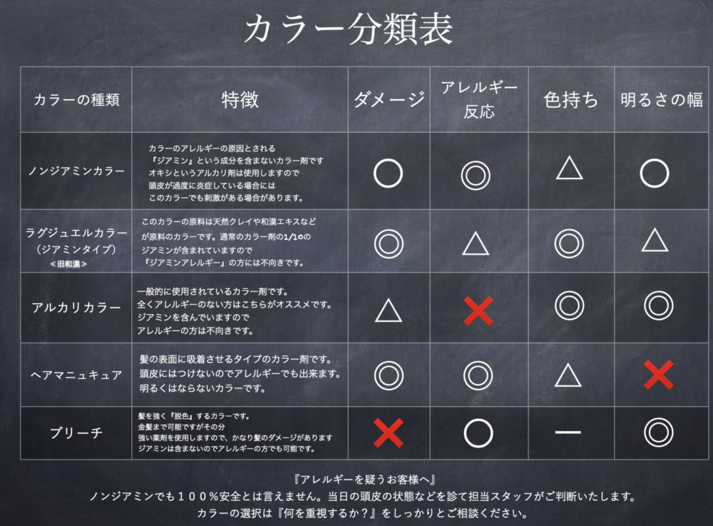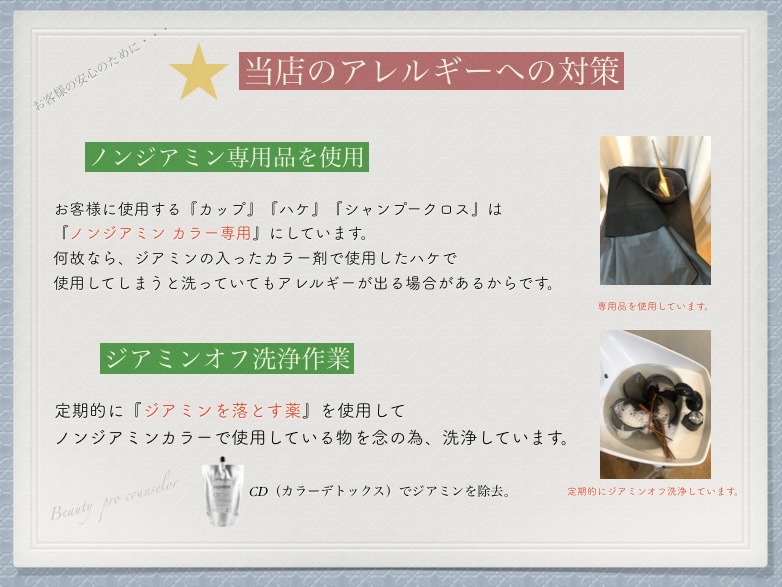 9・ノンジアミンカラー当店のアレルギー対応策