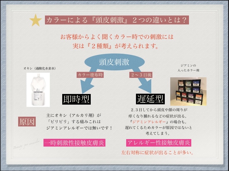 カラーによる『頭皮刺激』には2種類あります。