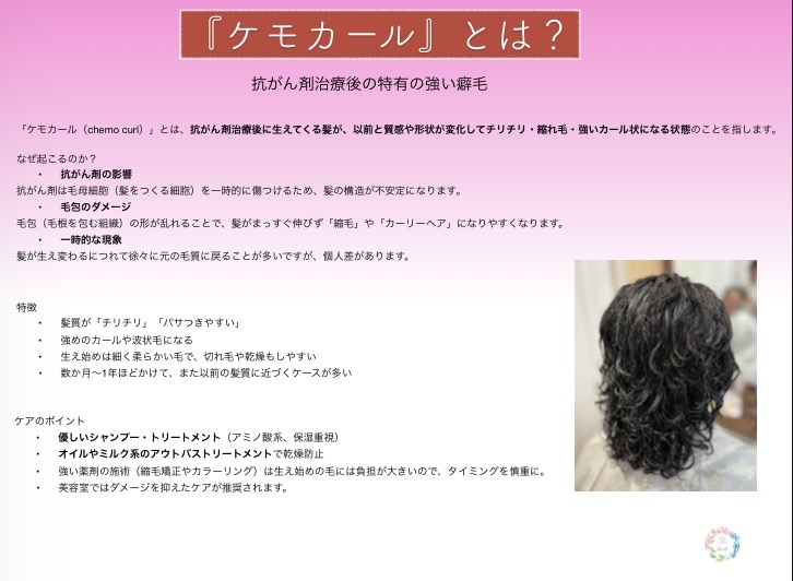 私達はこのように治療後にでる特有の癖毛を「ケモカール」と呼んでいます。