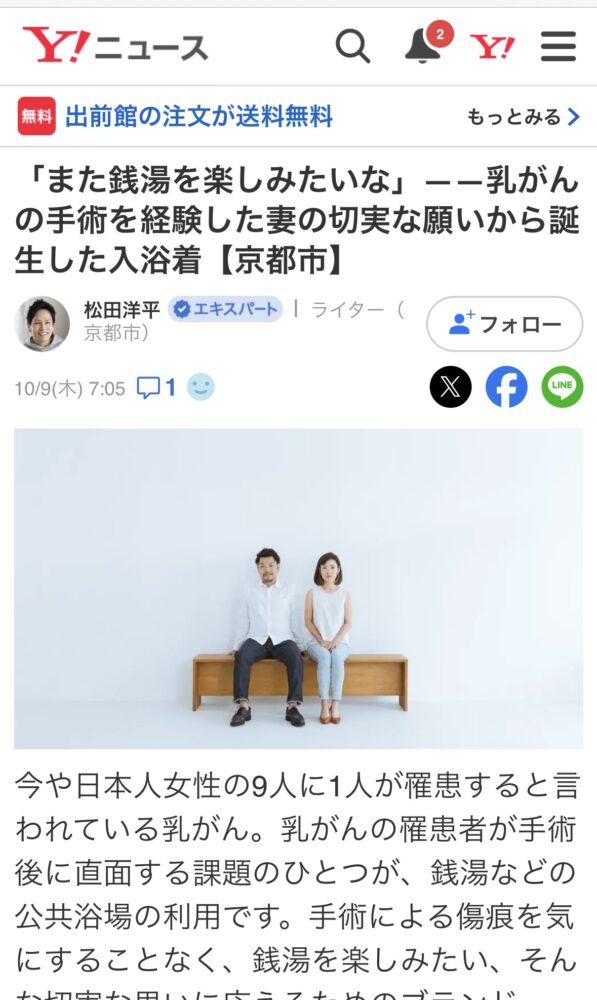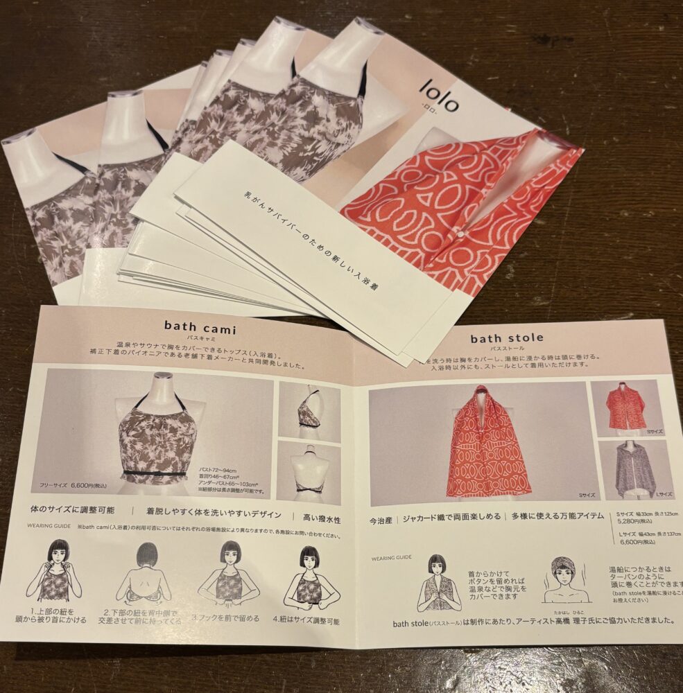 こちらの「入浴着」は乳がん罹患者の為に作られた来たまま入る事を目的にしたケアウェアです。まだまだ認知度が高いとはいえないので新たな文化を創るお手伝いをvisagelocaはしていきます。